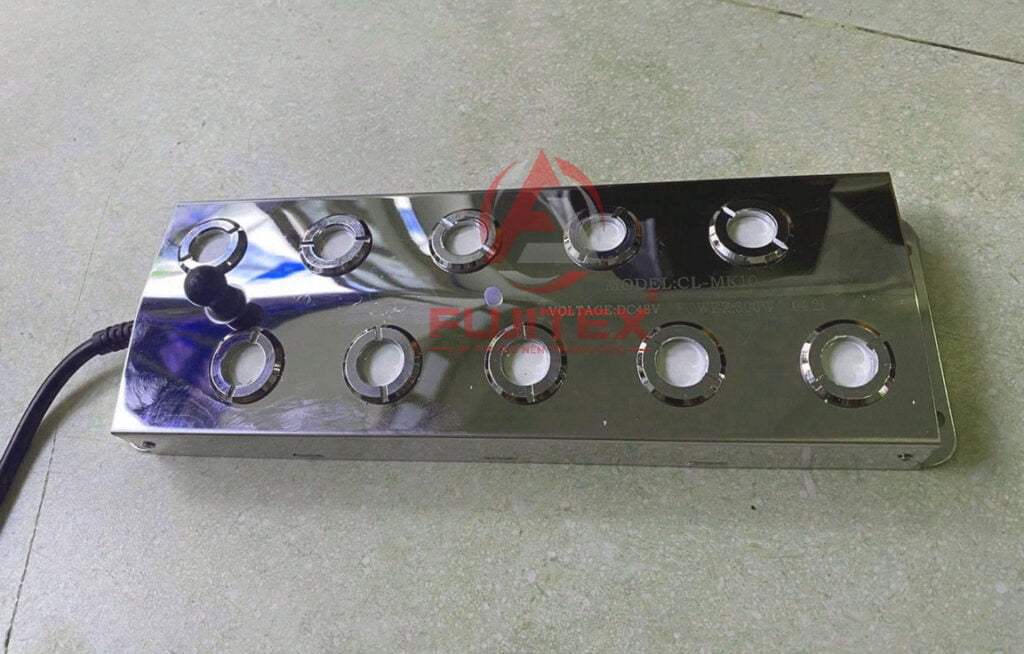 Vỉ tạo ẩm siêu âm 10 mắt được thiết kế với 10 đầu phun nước, giúp phun ra nhiều giọt nước hơn và tăng độ phủ của màn sương trong phòng. Điều khiển độ ẩm của thiết bị thường được thực hiện bằng cách điều chỉnh lượng nước phun ra bằng van điều khiển hoặc điều khiển điện tử.
